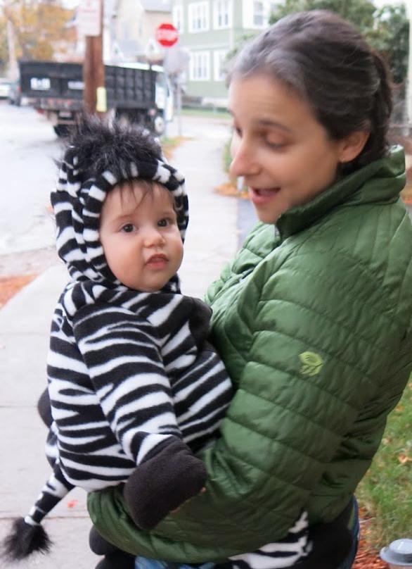 Next, the many looks of Darwin (the photo with aunt Sara shows off the tail on Dar's Halloween zebra costume). All photos in this entry were take either by Elissa or Sara. Click on any photo to enlarge it, and return with your "Back" button.