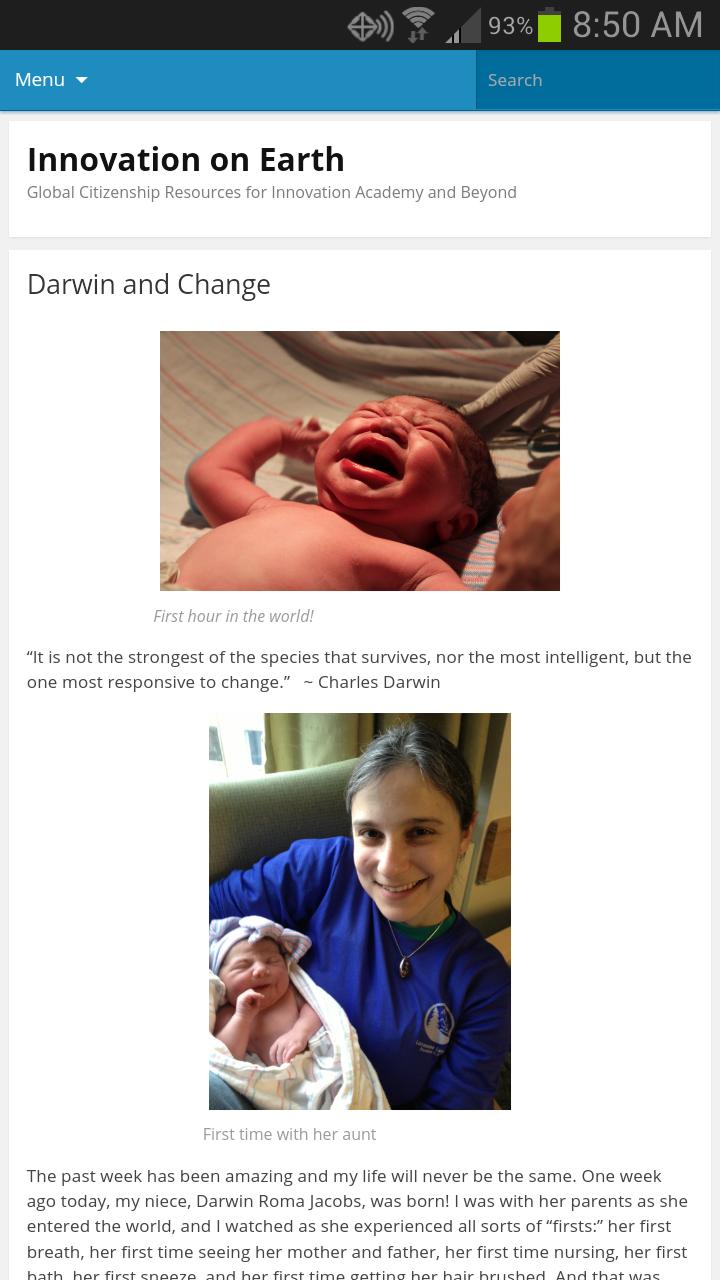 You'll notice that like me, Sara blogged about my new granddaughter (and Sara's niece) Darwin Roma (my entry last week was called Darwin). If I call up the exact same page as above on my Samsung Galaxy S III smart phone, here's what it looks like (click on it to enlarge it, and click a second time to see it full-size):  Note 2