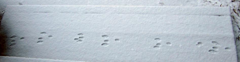Note 2:   There are other local animals we've seen in the area whose tracks I've never seen in snow on my property: raccoons, foxes, groundhogs (also called woodchucks), and opossums (usually seen dead on the road).   [return to text]