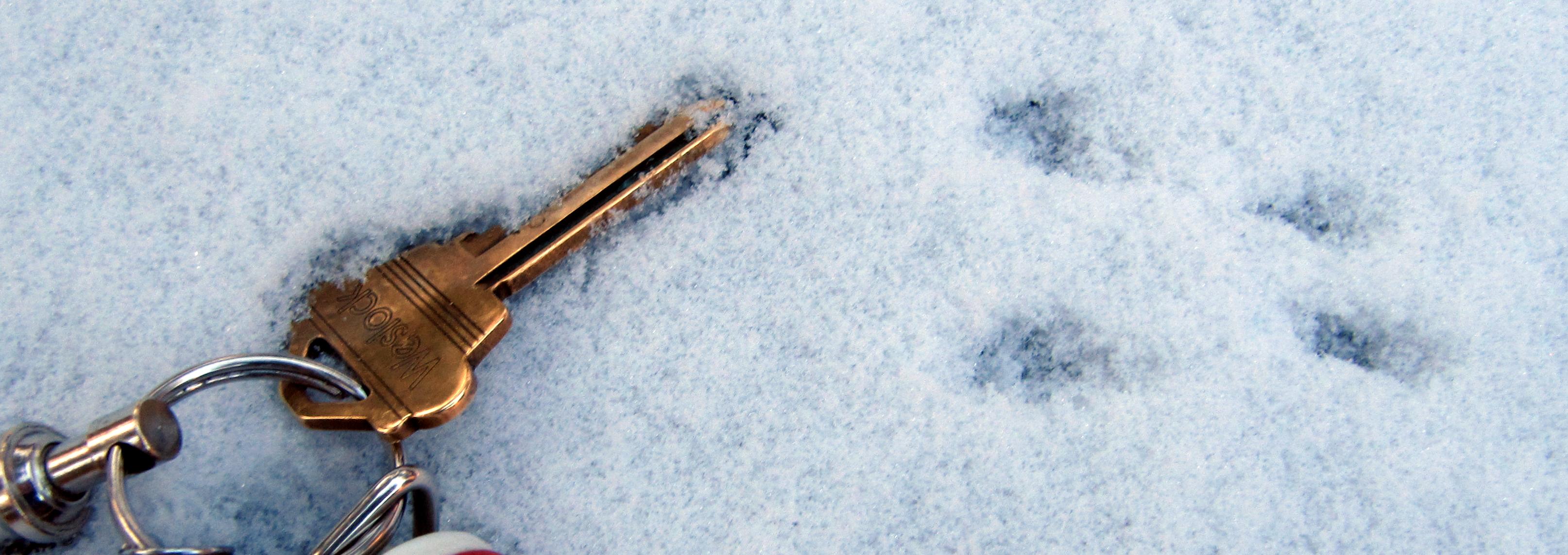 Some small rodent (I think) had visited. It could have been a small squirrel, but the track looks too small (I put down a key, for comparison purposes):