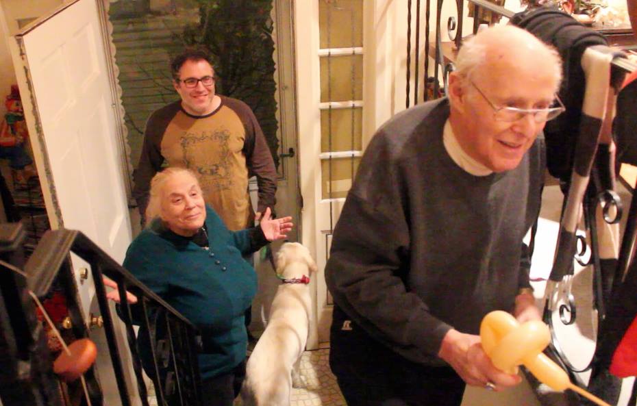 Jerry, Barbara, Bruce, and Winter coming in the front entrance