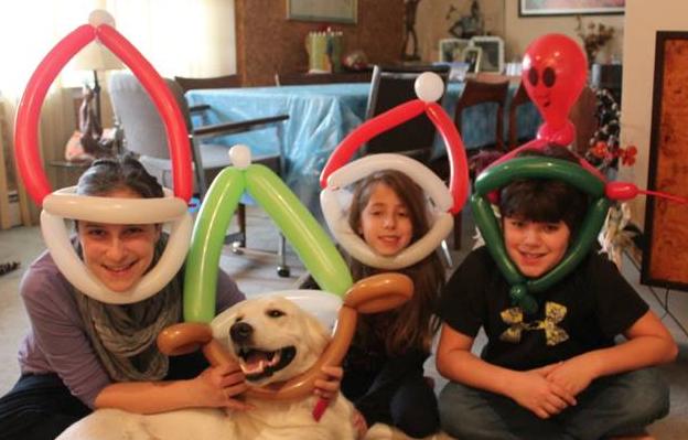 Here are the kids wearing Sara's balloon hats. Left-to-right below, Sara, Winter, Emmie, and Aaron.
