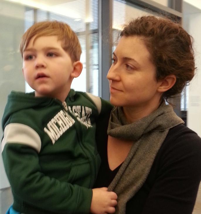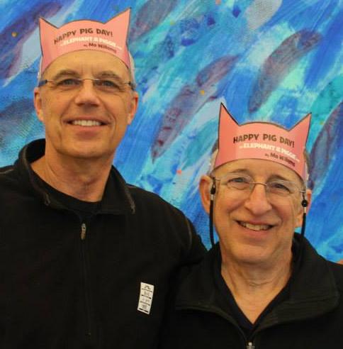 Below, left: Peter and I are standing in front of a large Eric Carle painting. Right, Liza and Jackson about to tour the museum.