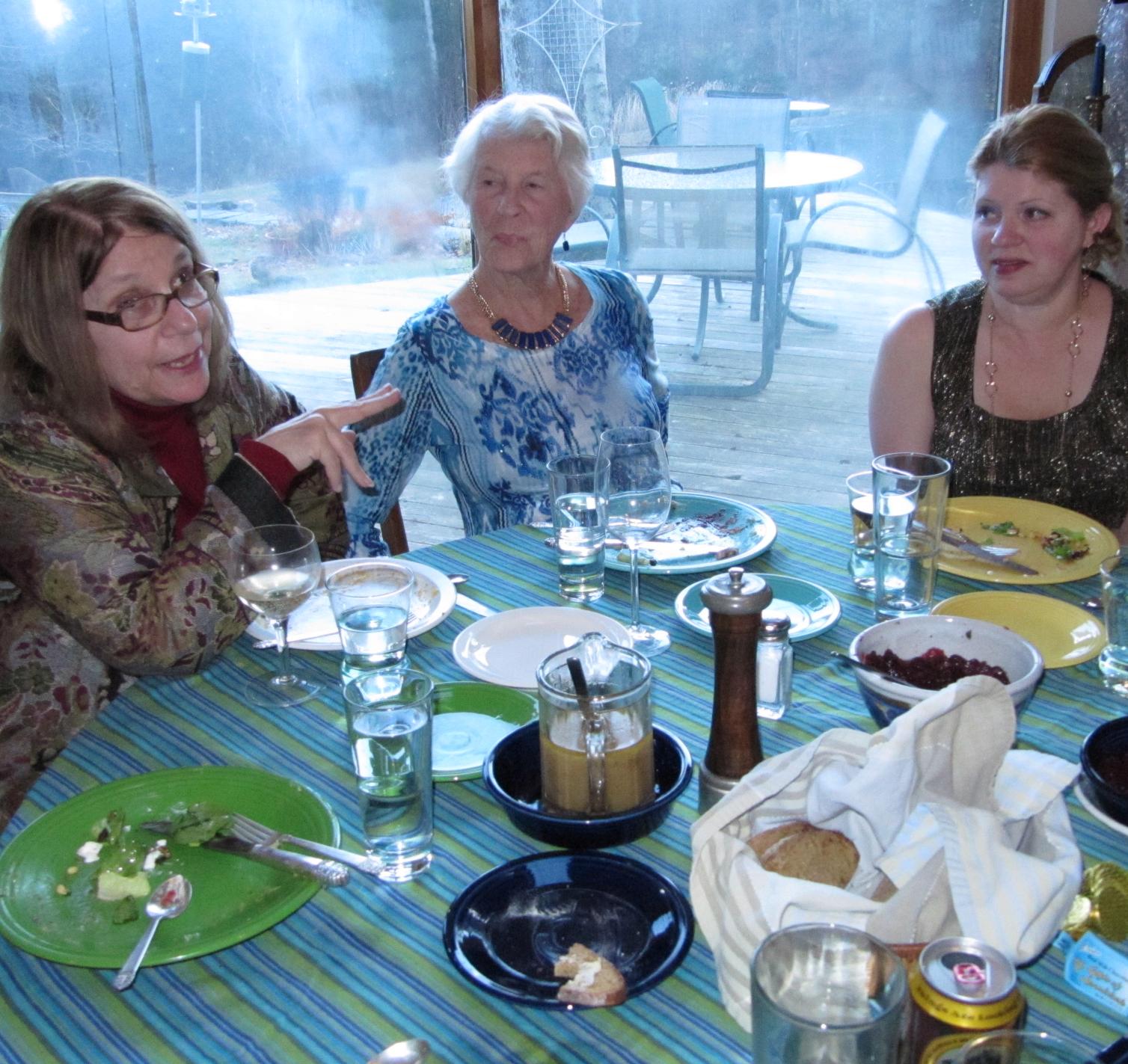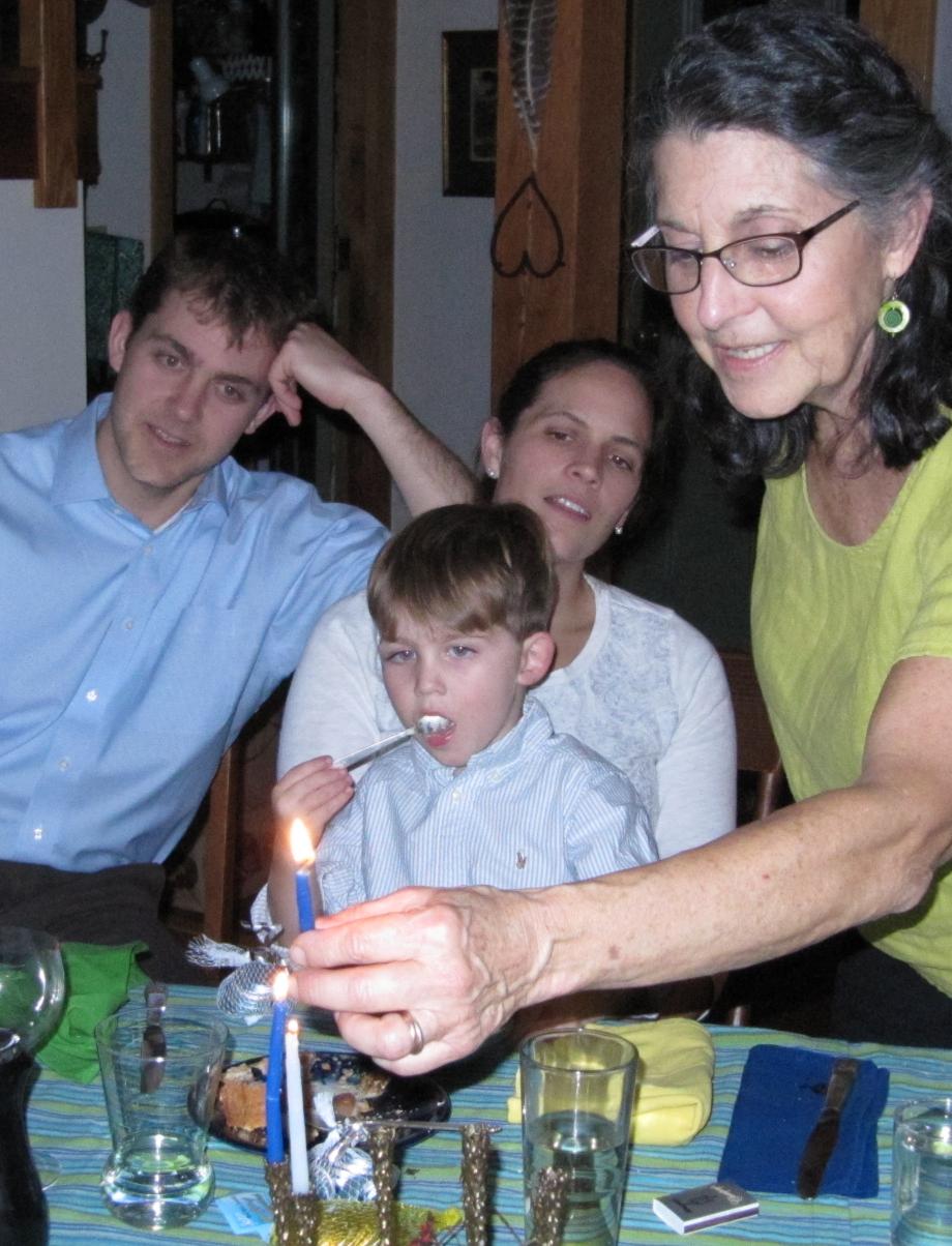 This was the first Thanksgiving in recorded history to coincide with the first night of Hanukkah, and it will be the last time this happens for quite some time. Note 1 Because of this, Sara made latkes (potato pancakes, a traditional dish often served at Hanukkah) as part of her potluck contribution, and included latkes made out of sweet potatoes instead of regular potatoes (sweet potatoes being a traditional Thanksgiving dish). We also lit Hanukkah candles for the second day - see Phyllis doing the lighting as Jonas, Carolyn, and Jackson look on. ![]() Entitled "First Thanksgiving, this blog entry is centered around Darwin and her close family members. Come to think of it, our very lives have to some extent become centered around Darwin. But to include photos of everyone, here are the four guests that didn't get shown above: on the left below, Liza's boyfriend Matt, and on the right, Margie, Peter's stepmother June, and her daughter (Peter's half sister) Melissa.