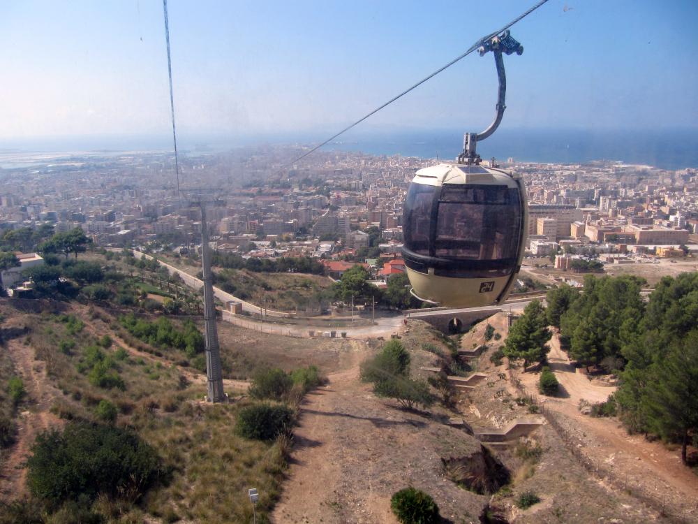 In any event, as you can see to the right, we did get to ride up. When we got to Erice we went to the tourist office to get a map of the town and other information about things to do during our visit. But the tourist office had closed for lunch. In fact, it closed at 1 PM, the exact hour the cable car began its operation that day. Italian coordination at work. One can't really generalize about an entire country, of course, but obviously that hasn't stopped me (or anyone else). And poor communication and disorganization is hardly limited to Italy. For example, you'd think that by now Delta Airlines might have noticed that there's no use assigning seats on Alitalia flights, since Alitalia will ignore them. The Italians have a lot of pride in their country and their history. After all, they're the Romans, and they once ruled over all of Western Europe, the Middle East, northern Africa, and England. But the impressive remains of the Roman Empire, which can still be seen in Sicily and elsewhere, make me think that the Romans must have once been considerably more disciplined than the modern Italians. ![]() ![]() Note 1: For those unfamiliar with Venice: a "vaporetto" (plural "vaporetti") is a motorized boat that serves as a public bus in Venice. They're so named because they used to run on steam (in Italian, "vapore"). [return to text] Note 2: Here's an interesting web page called The Geometry of Pasta, which shows you the shapes of 78 different pasta forms. The chef called the one she made "maccheroni", but it was more like the "maccheroncini" ("little maccheroni") of that web page, in that it had a smaller central hole than conventional maccheroni (the source of the English name "macaroni"). Here's a YouTube video on How to Make Busiati, a similarly formed pasta, only with a spiral around the central wire (which is removed, of course, before cooking). We saw busiati frequently in Sicily. Here's an on-line recipe for Busiati with Trapani pesto, a dish we ate in Trapani itself. It was often made with crushed pistacchio nuts instead of almonds. By the way, in reading this page, remember that in Italian, "ch" or "cch" is ALWAYS pronounced like a K - no exceptions. Thus "maccheroni" is "mak-ay-ROH-nee", and "pistacchio" is "peess-TAHK-ee-oh (and "bruschetta" is "broo-SKETT-ah"). Think of the Italian word "scherzo" ("SCARE-tsoh"). [return to text]