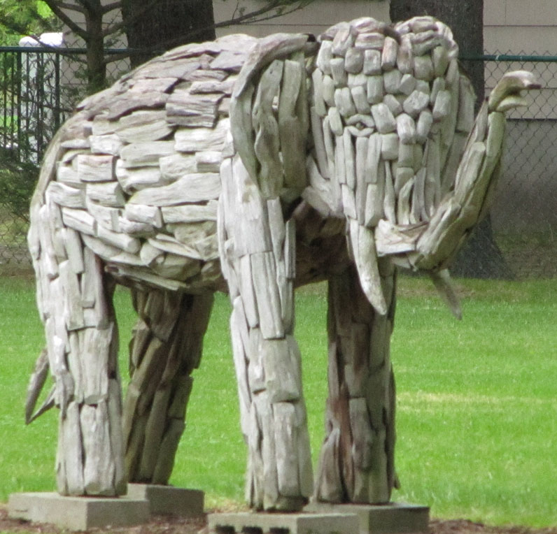 Statue of elephant made out of blocks of woodWhen driving to various destinations to our Northeast, we often use Waltham Road, which turns into Old Sudbury Road as it leaves Wayland and enters the town of Lincoln. We always enjoy driving along this road, because there are lots of interesting things to see. This blog entry addresses the animals of Waltham Road / Old Sudbury Road. Note 1