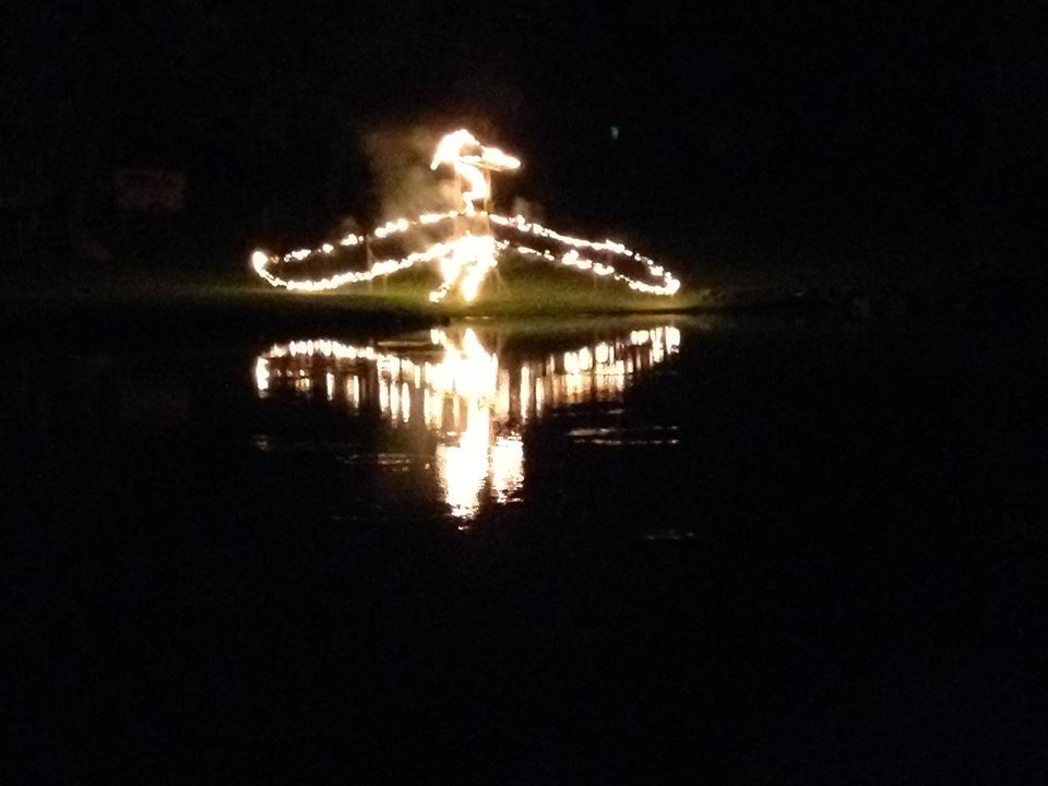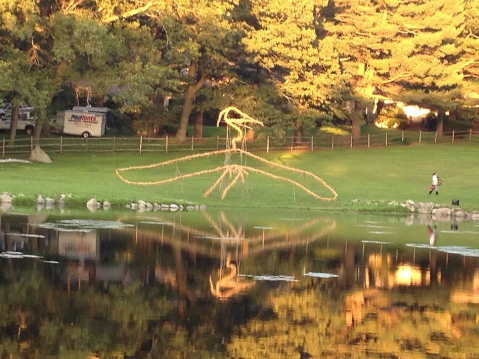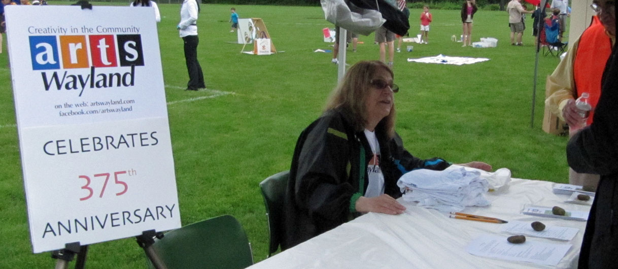 ![]() We bought our house in the town of Wayland, Massachusetts in 1972, and have lived here ever since. The town itself was the first settlement of Sudbury Plantation in 1639, so it just celebrated its 375th anniversary. Wayland is one town to the west of Route 128, Boston's circumferential highway (the town of Weston, to our east, abuts that road). Wayland was thus a very convenient place to live for someone like me who worked in the area's high-tech industry. Using Route 128, I was able to commute either north or south to any of the high-tech companies clustered along that road. The anniversary celebrations, which have been going on all year, culminated in a parade last Saturday. It ended in the fields behind the town building, where various booths were set up. One of them contained a large anniversary "quilt cake", described by the banner shown below: ![]() Here's the central portion of the cake itself, although the picture isn't wide enough to show the whole thing. It comprised a 6 x 12 array of identically sized square cakes, each one decorated in honor of the occasion by a different Wayland resident (or in some cases, by a Wayland business): ![]() Margie didn't watch the parade. Rather, she manned the Arts Wayland desk, as shown below, trying to drum up membership and support for that organization. Arts Wayland supports the arts in our town. Currently, Margie is treasurer. ![]() Here are some photos of this fairly typical small-town USA parade: ![]() Police and fire led off ![]() Many other town vehicles followed ![]() Quite a few antique cars participated ![]() Of course, the Boy Scouts ![]() ... and some horses ![]() Banner from a local senior residence It was nice to see the marcher (above) from a local senior residence still going strong at the end of the three-mile march (4.8 km). The photos shown above are only a small sample of the participants in the parade. It also included military contingents, trucks from the adjacent towns of Weston and Natick, floats from various local churches and other organizations, a rock band on a flatbed truck, and so on. At the end of the event, the cake was cut up and distributed (the start of that process is shown below). As we were leaving, it seemed that only about half of the cake had been cut up and given out, and we took an entire square home to have for dessert later that evening. ![]() All above photos by Larry Krakauer Margie and I didn't attend the final event, an outdoor evening dance. It culminated after dark in the burning of a burlap-wrapped wood frame in the shape of a heron, a large bird seen frequently around here. Our friend Fran Patterson posted the photos below on Facebook: ![]() Heron photos by Fran Patterson All in all, a fitting end to Wayland's 375th anniversary celebration. ![]() ![]() |