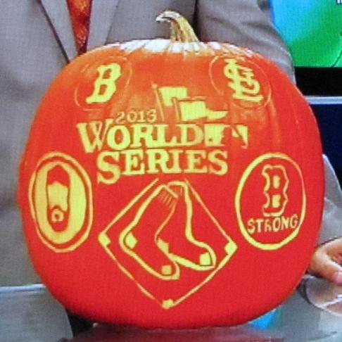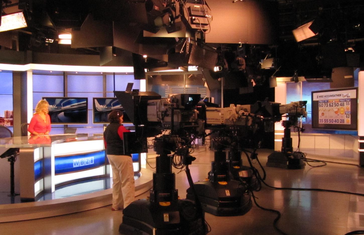 What he had not yet done at the time of the noon newscast was to scoop out the inside of the pumpkin, but he said he intended to do so before the evening newscast. That entailed leaving only a thin layer of pumpkin flesh under the external carving, so that a light inside could show through. Obviously he did so after we left. The picture to the right shows his Red Sox Championship pumpkin as it was shown during the 11:00 PM newscast - I took a photo of my TV screen. Mike Nosel was an excellent, well informed guide, and news anchor Paula Ebben and meteorologist Todd Gutner were friendly, interesting, and generous with their time. My next entry describes the WBZ control room from which I watched the newscast. I talk about our visit to an on-air WBZ radio studio as part of a third blog entry, which is mostly about a course I took in high school called Radio Workshop. ![]() ![]() Note 1: WBZ owns an AM radio station as well, on the air in the Boston area at 1030 KHz. It's a "clear channel" AM station, meaning it's very powerful, and it can be heard at great distances, particularly at night, when conditions for propagation of the AM frequencies are favorable. Anthony Silva took us in to a radio studio, where Mary Blake was on the air at the time. I include a picture of this in a subsequent blog entry called Radio Workshop, but for this entry and the next, I stick to the TV side of the operation. [return to text] Note 2: An internet search turned up a glossary of lighting terms which shows that these may be called "flags", "cutters", or "gobos". [return to text] ![]() |