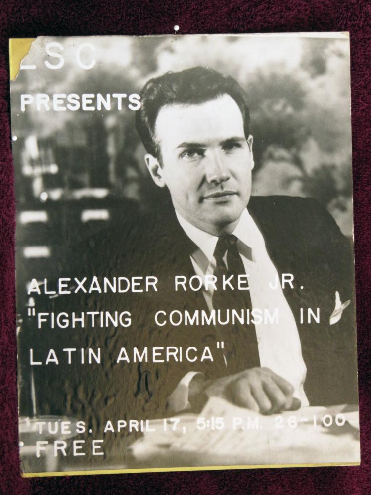 ![]() ![]() Note 1: In case anyone doesn't know what it is: "silkscreen" is printing technique, still widely used. It's often called Serigraphy. A finely woven screen is used, stretched on a frame. As the name implies, the screen was traditionally made of silk, but nowadays it's apt to be polyester, so the process is sometimes called just "screen printing". A waxy stencil is scored with an X-Acto knife, or a similar blade, and the wax peeled off in the areas to be printed. The stencil is then laid under the screen, and a chemical that dissolves the wax slightly is used to soften the wax, thereby pressing it into the screen, where it fills the holes in the mesh. During printing, ink is pressed through the screen with a squeegee, passing through only where the stencil was cut out. There are now processes available for preparing stencils from photographic masters, but for the LSC posters made in the sixties, I'm pretty sure all the stencils were cut by hand. Multiple screens need to be used, one for each color. Screen printing may be most familiar to a general audience these days as one of the main ways of printing on fabric, specifically for the production of T-shirts. But in fact it's a process that's widely used industrially, for printing on various products, and for making printed circuit boards. My company, Kronos, used it to print with a conductive silver-based ink to create keyboards for our early timeclocks. [return to text] Note 2: It later turned out that Rorke was working for the CIA at the time, and he was involved in efforts to overthrow the government of Fidel Castro. About a year and a half after his presentation at MIT, he disappeared while flying in a small airplane over Cuba. You can see a short account of his activities here. [return to text] ![]() |