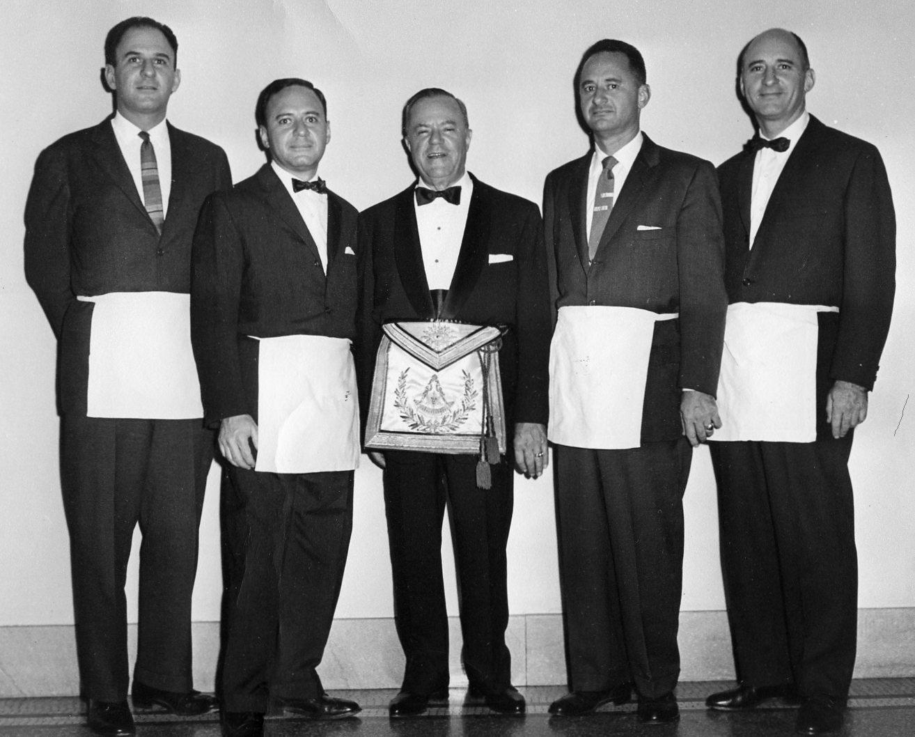 Abe's father Philip Krakauer had also been a member of both of these organizations. Both Philip and later Abe served as Master of their Masonic "Lodge", the Maimonides Lodge #743, and Abe later served as the Grand Representative of the Grand Lodge of New York to the Grand Lodge of Israel (the Masons like to use the word "grand" a lot). Note 1 Only men can be admitted as Masons. In my youth, women were traditionally excluded from what were called, after all, "fraternal organizations". Nowadays, many traditionally male college fraternities are accepting women as members. To be a Mason, you also have to believe in a "supreme being", although the interpretation of exactly what that means to you is not explored in any depth. When I became involved with the Masons, I remember that part of the ritual involved an oath to never knowingly allow a woman or an atheist to become a member. I never understood just what the Masons had against atheists. All the atheists I know are perfectly nice people. But it's a form of religious bigotry that's shared by a great many people in the United States, including, for example, the national organization of that otherwise admirable organization, the Boy Scouts of America®. Note 2 In the tradition of my grandfather's Lodge, the Masons did not recruit new members. In theory, people would find out on their own about Masonry, perhaps by meeting members of the Lodge. They could then express an interest in joining on their own initiative. I think that these days the Masons may be having trouble finding new young members, because they seem to be conducting a TV advertising campaign to get people interested in joining. This directs you to a webpage called http://askafreemason.org/, where you can find out more about the organization. I doubt if my father expressed an interest in Masonry on his own, and besides, he had become an atheist while a college student at Cornell University. So despite the non-recruiting tradition of his lodge, I suspect that it was Abe who urged his sons to become Masons. You couldn't become a Mason until you reached adulthood, which if I'm remembering correctly was defined as 18 years of age, so my father would have become eligible in 1933, when he was a college student. But Abe had a better plan. He "saved up" his four sons until the youngest, Bill, was eligible, about ten and a half years after my father, who was the oldest. Only then did he have all four of his sons inducted into the Masons together. This event was a first in the history of Maimonides Lodge: four sons being simultaneously "raised" as "entered apprentices", to use Masonic jargon. Of course, from what I've said above, you can see that it's likely that there was another "first" involved: I suspect my father Daniel was the first atheist member of Maimonides Lodge. That raises an interesting question in my mind: did Abe know about this? After all, if he did, he had violated his oath to never knowingly allow a woman or an atheist to become a member of the Lodge. I suppose it's possible that he didn't know about my father's religious beliefs, or perhaps he simply didn't want to know, or didn't care. Shortly after I turned 18, my father approached me with some hesitation. He told me that Abe had in mind another "first". If I myself applied to Maimonides Lodge for membership, and was accepted, I would become the very first fourth-generation member of that Lodge. Would I be willing to do that? Now, I've never felt particularly interested in fraternal organizations. In college at the time, I was living in a dormitory, and had never been interested in joining a fraternity. I felt no particular urge to join the Masons. On the other hand, I had nothing against the organization, and if it would make my grandfather happy, why not? So on one of my trips to New York, I found myself being interviewed by an imposing committee of Masonic Grand Masters and past Grand Masters, the committee lacking only my grandfather, who had excused himself based on conflict of interest. They asked me if I believed in God, and I said yes. They then asked me how my belief in God was manifest. I didn't initially know how to answer this, since not having a belief in God in actuality, it wasn't particularly manifest in any way at all. I quickly said something about giving to charity and doing good works, which seemed to surprise my questioners. Apparently, they expected me to answer by citing membership in some religious organization, such as a temple (the membership of this particular Lodge was almost exclusively Jewish). In any event, I passed the interview, which I think was a foregone conclusion unless I had messed up really badly. I then had to go through an education program in Masonic rituals. Although I'm no longer a Mason, I see no particular reason to reveal any of their secrets here, although to tell you the truth I think they are now all available on the web somewhere. I had to memorize responses to questions which I would be asked during various ceremonies, and I was quizzed on producing these answers from memory. I don't really remember all the details, but there was a good deal of preparation involved. Fortunately, I've always had a very good rote memory, and I certainly didn't have any trouble with it. Because the Lodge I was joining was in New York City, and I was attending college in Cambridge, Massachusetts, I was connected to a Masonic Lodge in Framingham, where I could undergo much of the training. Thus, I didn't have to travel into New York for every session. But ultimately, when I was initiated as an entered apprentice, it was of course at the Maimonides Lodge in New York. The Lodge made rather a fuss over this event, as I was a young person in a lodge that was turning quite elderly, and of course I was the first fourth-generation member to ever be admitted. My grandfather presented me with a Masonic lapel pin to wear, and bought me a lifetime membership to the Lodge. The event brought togethe