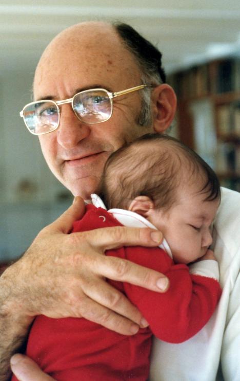 Dan and Elissa (click to enlarge)My father, Daniel Krakauer (shown to the left with my daughter Elissa), was a biology major at Cornell. After graduation, he applied to one medical school, but was not accepted. He then went into the family business founded by his grandfather Philip, Kay Manufacturing Corporation, which made bed and furniture springs and innerspring mattress assemblies. He worked there all his life, along with his father and two of his three brothers, eventually becoming president.