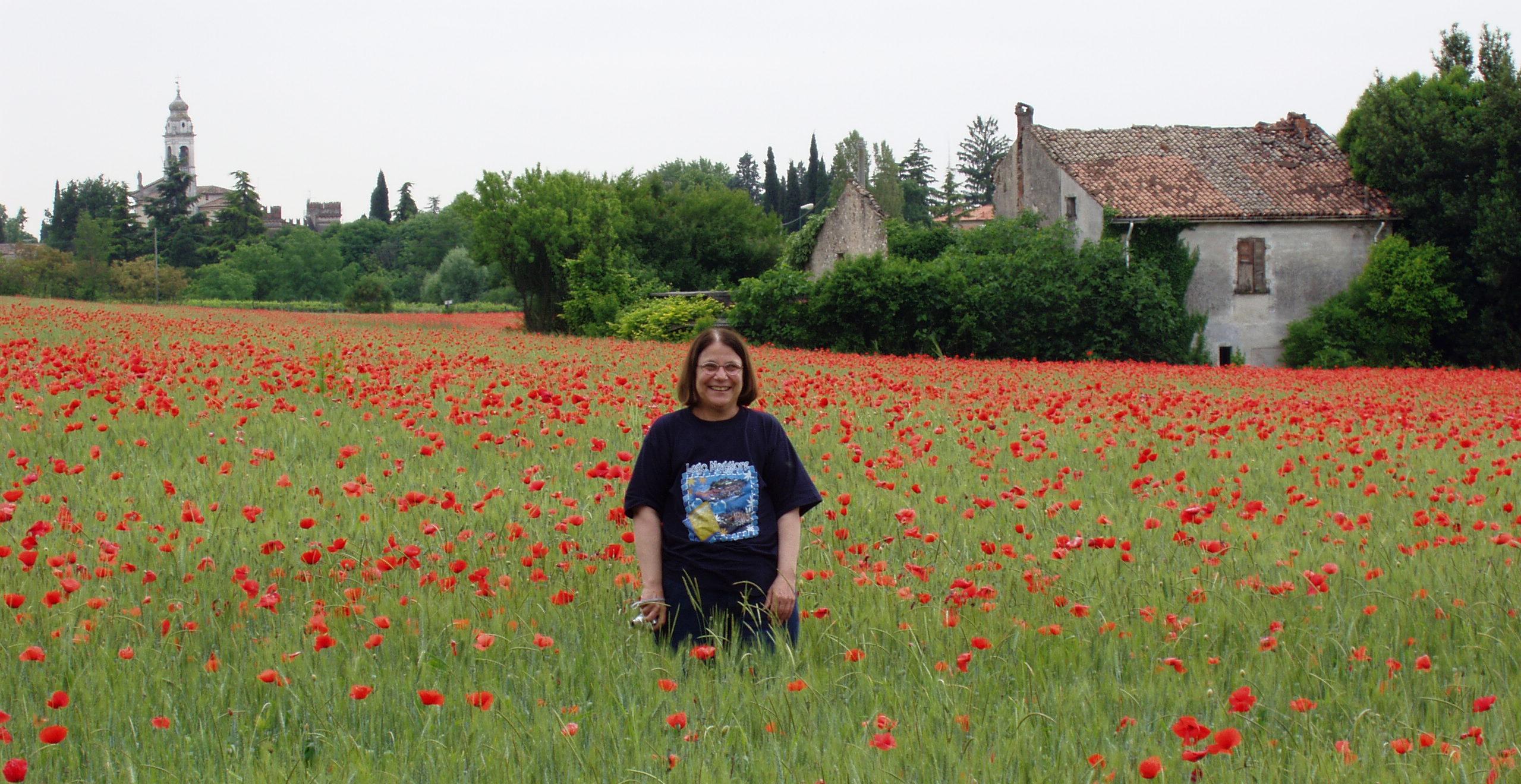 Margie standing in a field of poppies