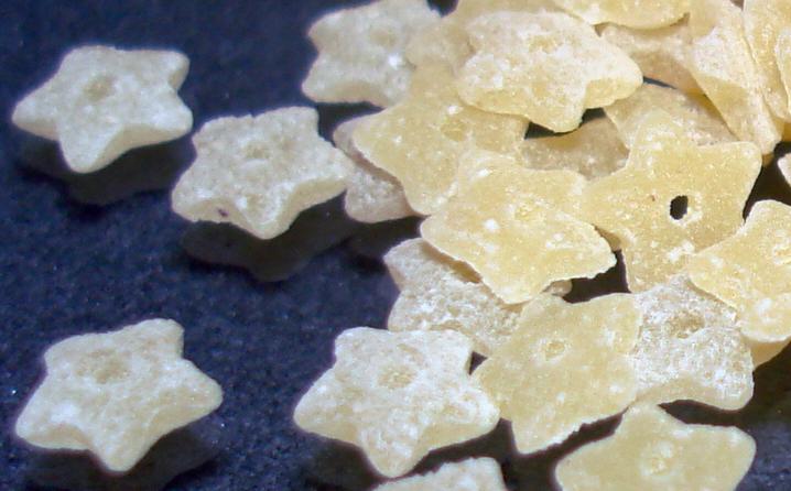 The derivation of the name of this pasta starts with stella, meaning "star". Removing the final "a" and adding the feminine diminutive ending –ina gives stellina, meaning "little stars", which is obviously what they look like. Note 1