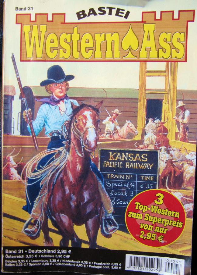 I took a picture of it, which you can see to the left. You can click on it to see a larger version, and then in most browsers, click on it again to make it larger still. Then use your browser's "Back" button to return here. Upon my return home, I tried to figure out what the title meant. But in my best German-English dictionary, the only meaning of "ass" was a verb, the preterite (simple past tense) of "essen", "to eat" (so that "Er ass" in German means "He ate"). It took a lot of searching on the web to come to the conclusion that in Austrian German, "Ass" means "ace", as opposed to "As", with only one "s", in standard German ("Hochdeutsch"). It can refer to the ace in a deck of cards, but also to someone who is skilled, as in "He's an ace shot." Note 1 This episode reminded me that words in any given language, in either spoken or written form, can have different meanings in other languages, and that sometimes these other meanings are amusing, particularly when they turn out to be vulgar. And that, in turn, reminded me of an event I witnessed many years ago. Margie and I were with our children, viewing an outdoor exhibit in front of the Boston Aquarium, along with a very large crowd of other visitors. A man appeared at the back of the crowd, and when he got close enough to see over the heads of the onlookers, he suddenly started repeating, in a very loud and excited voice, what seemed to be the well-known "F-word", the most serious (and most commonly used) English obscenity. This angered many of the bystanders, particularly since there were a lot of children in the crowd. But then, as the man's wife and children came up behind him, he started speaking to them excitedly in French, and the crowd calmed down when it realized that whatever he had said, it had not been intended to be English.