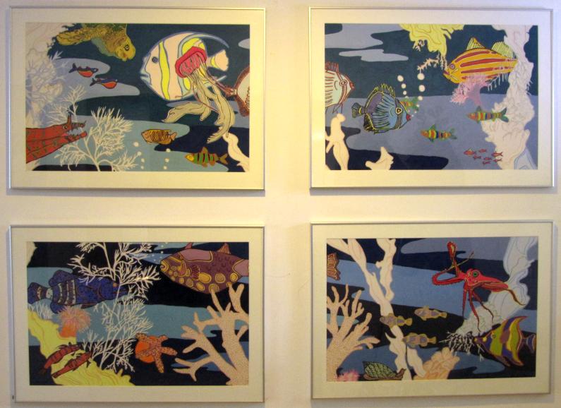 I think Margie is rather amused that these small departures from reality bother me. After all, these are a fanciful cow and fanciful fish. They don't exist anyway, so why should I care if their udder or bubbles are not depicted accurately? But somehow, a violation of basic biology or basic physics bothers me in ways that other departures from reality don't. And Margie has a Masters degree in biology - how could she paint a cow with five teats?